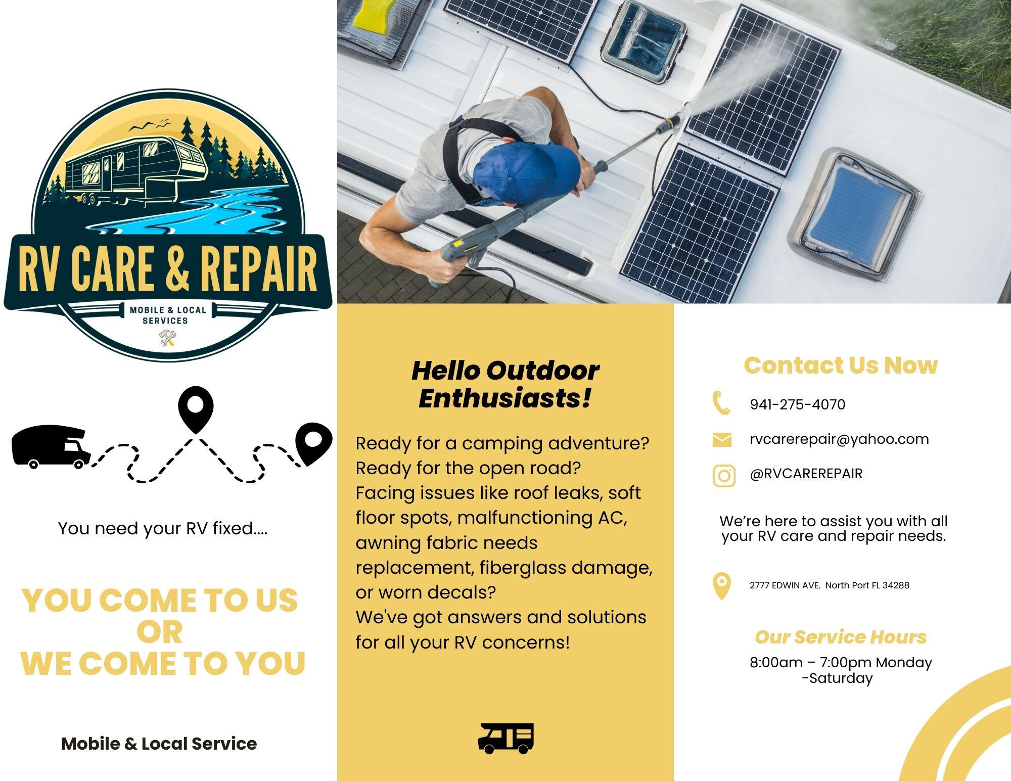 Facing issues like roof leaks, soft floor spots, malfunctioning AC, awning fabric needs replacement, fiberglass damage, or worn decals?